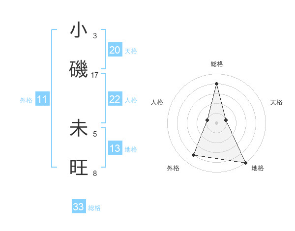 小磯 未旺さんの総格は33画の4点!