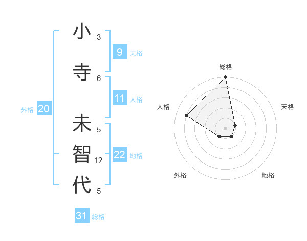 小寺 未智代さんを姓名の画数から五運を鑑定