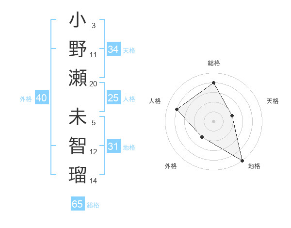 小野瀬 未智瑠さんを姓名の画数から五運を鑑定