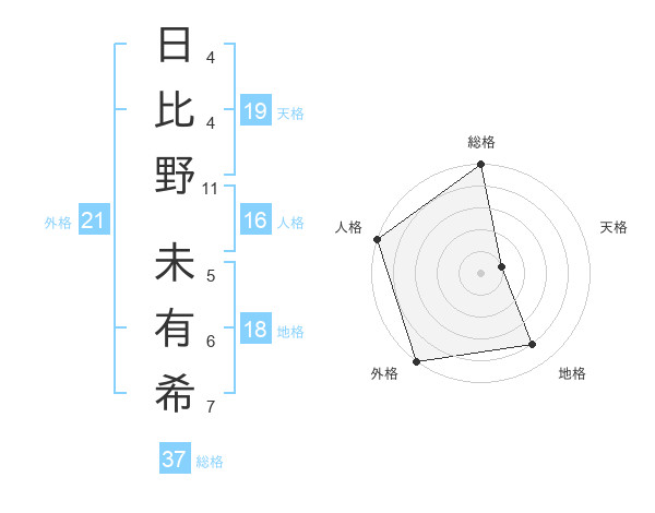日比野 未有希さんを姓名の画数から五運を鑑定
