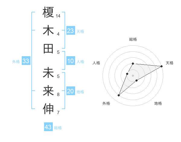 榎木田 未来伸さんの天格は23画の5点!