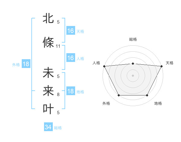 北條 未来叶さんの天格は16画の5点!