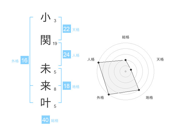 小関 未来叶さんを姓名の画数から五運を鑑定