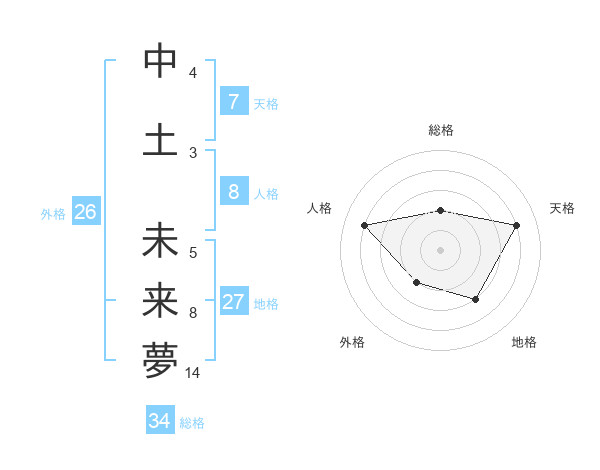 中土 未来夢さんを姓名の画数から五運を鑑定