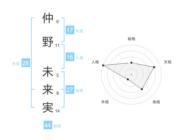 仲野 未来実さんを姓名の画数から五運を鑑定