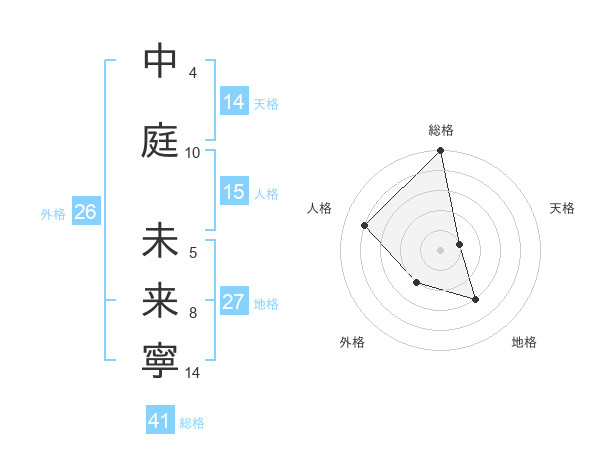 中庭 未来寧さんの総格は41画の5点!