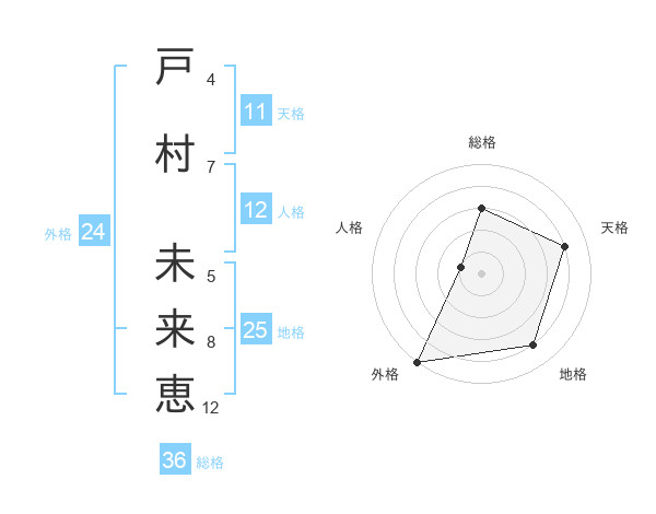 戸村 未来恵さんの天格は11画の4点!