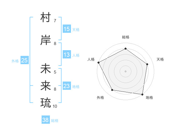 村岸 未来琉さんの総格は38画の4点!