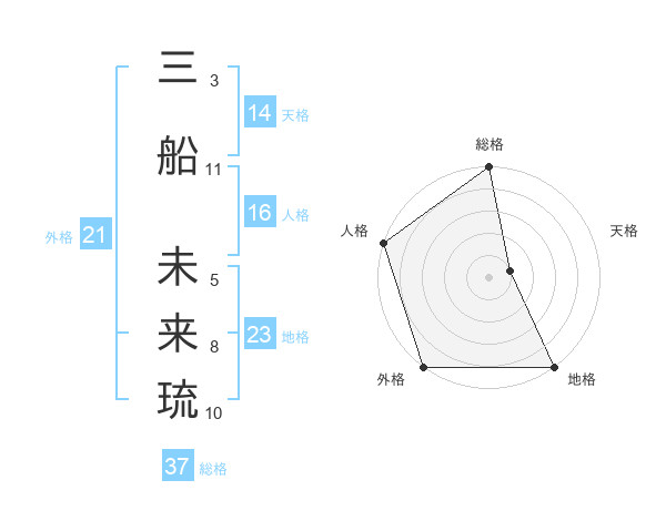 三船 未来琉さんを姓名の画数から五運を鑑定