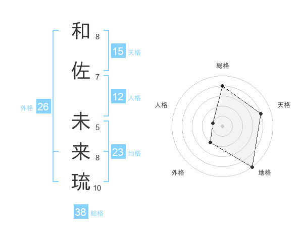 和佐 未来琉さんの総格は38画の4点!
