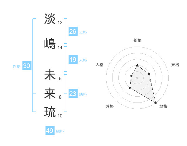 淡嶋 未来琉さんの地格は23画の5点!