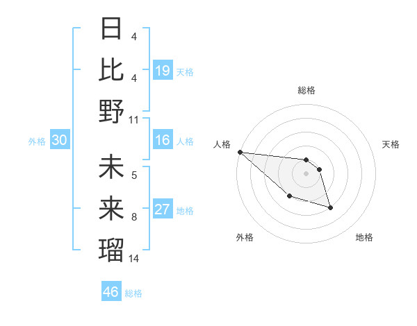 日比野 未来瑠さんを姓名の画数から五運を鑑定