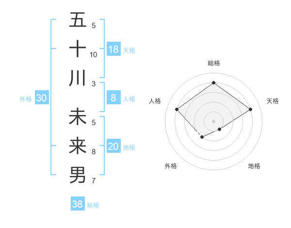 五十川 未来男さんを姓名の画数から五運を鑑定