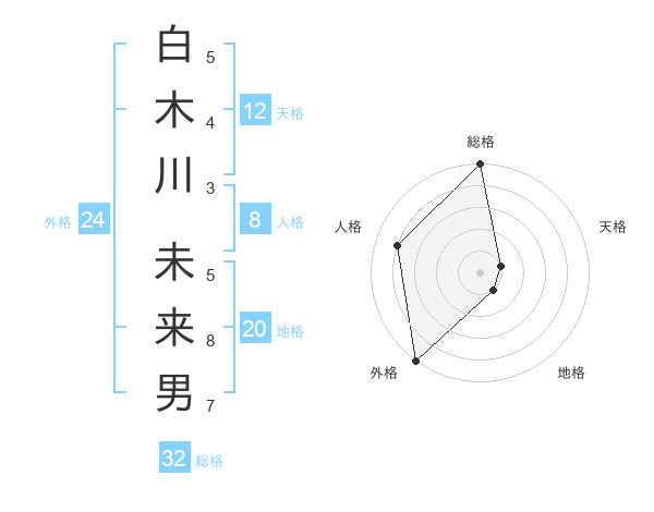 白木川 未来男さんを姓名の画数から五運を鑑定
