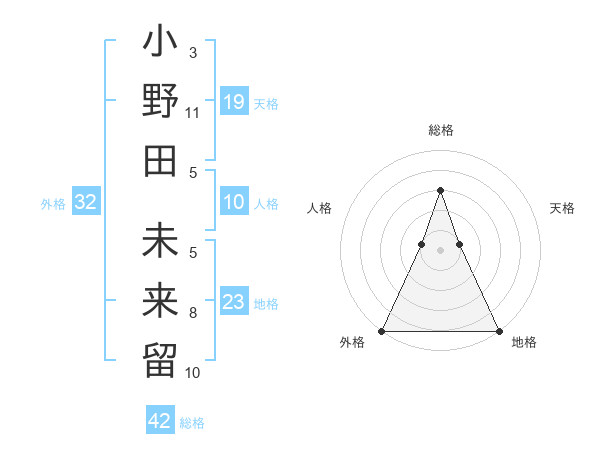 小野田 未来留さんを姓名の画数から五運を鑑定