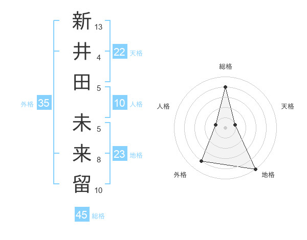 新井田 未来留さんを姓名の画数から五運を鑑定