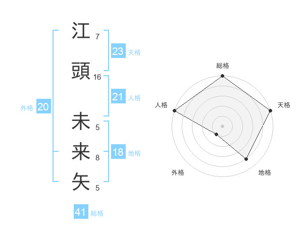 江頭 未来矢さんを姓名の画数から五運を鑑定
