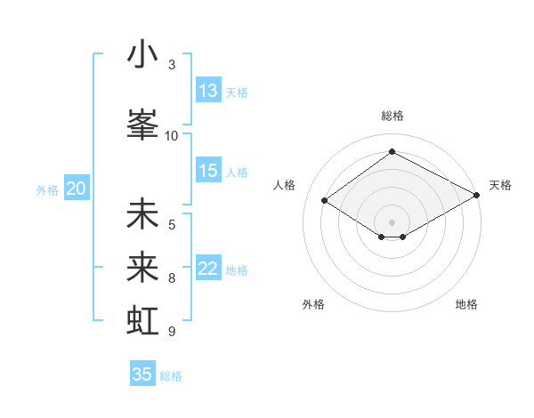 小峯 未来虹さんを姓名の画数から五運を鑑定