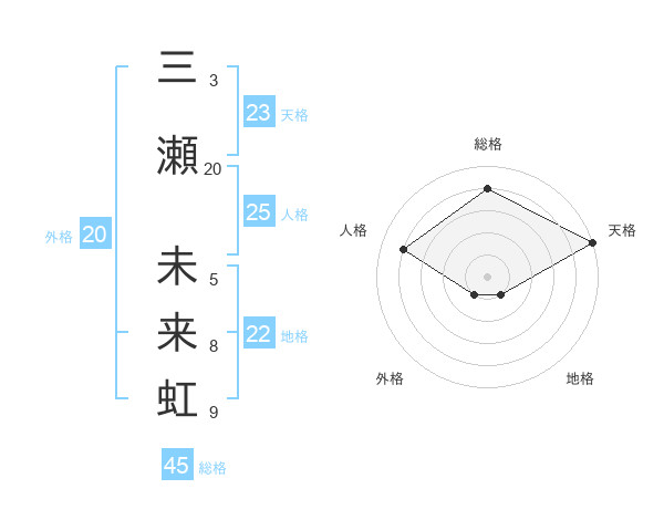三瀬 未来虹さんを姓名の画数から五運を鑑定
