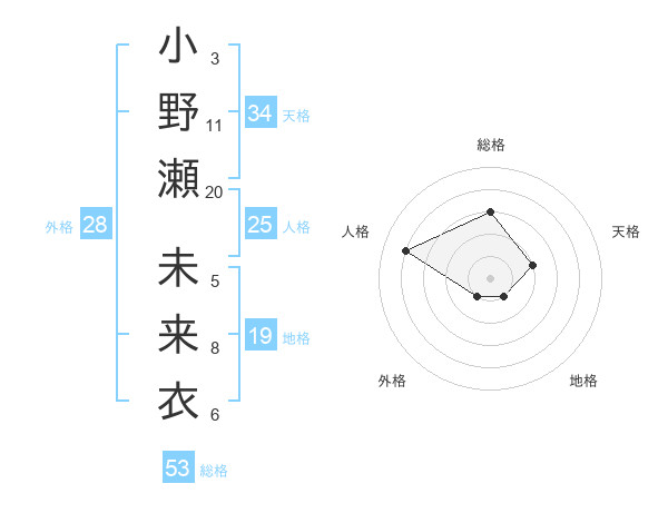 小野瀬 未来衣さんを姓名の画数から五運を鑑定