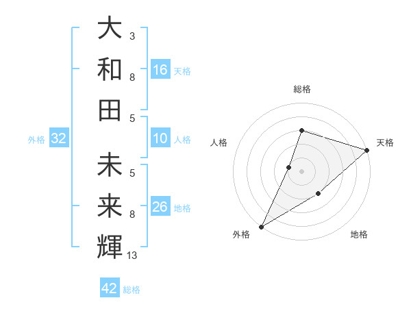 大和田 未来輝さんの天格は16画の5点!