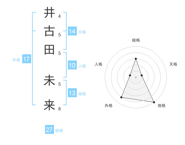 井古田 未来さんの総格は27画の3点!