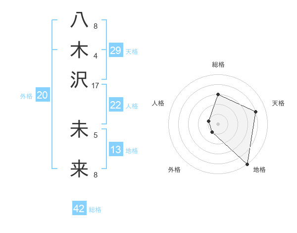 八木沢 未来さんの地格は13画の5点!