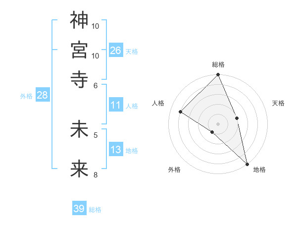 神宮寺 未来さんを姓名の画数から五運を鑑定