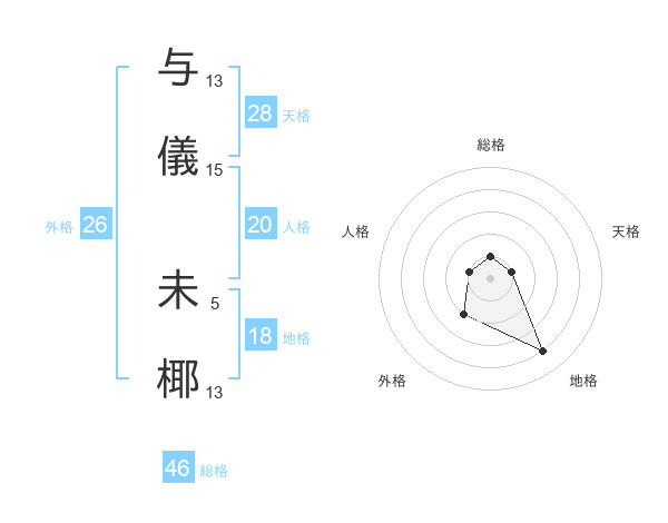 与儀 未椰さんの総格は46画の1点!