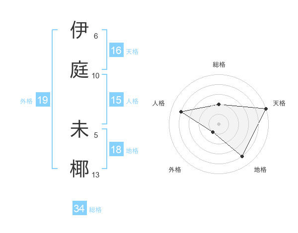伊庭 未椰さんを姓名の画数から五運を鑑定
