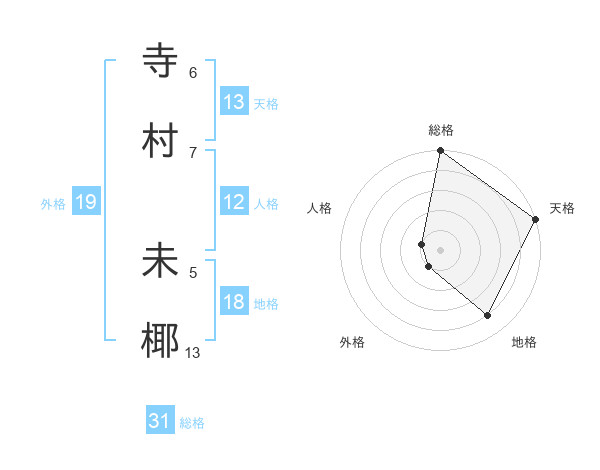寺村 未椰さんの天格は13画の5点!