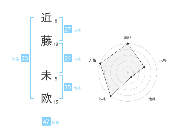 近藤 未欧さんの総格は47画の5点