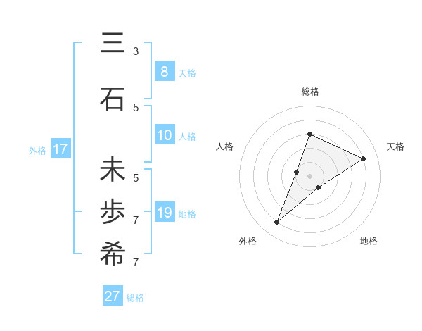 三石 未歩希さんの外格は17画の4点!