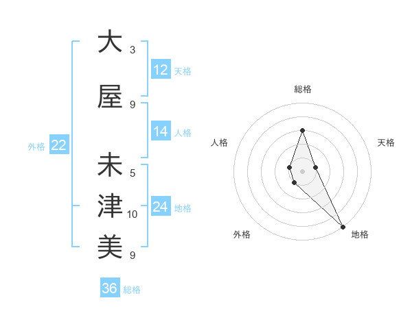 大屋 未津美さんを姓名の画数から五運を鑑定