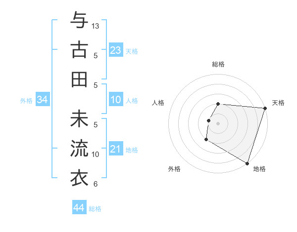 与古田 未流衣さんを姓名の画数から五運を鑑定