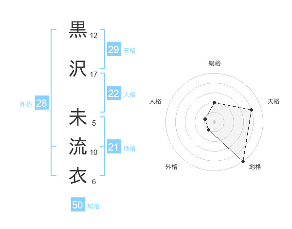黒沢 未流衣さんを姓名の画数から五運を鑑定