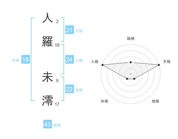 人羅 未澪さんを姓名の画数から五運を鑑定