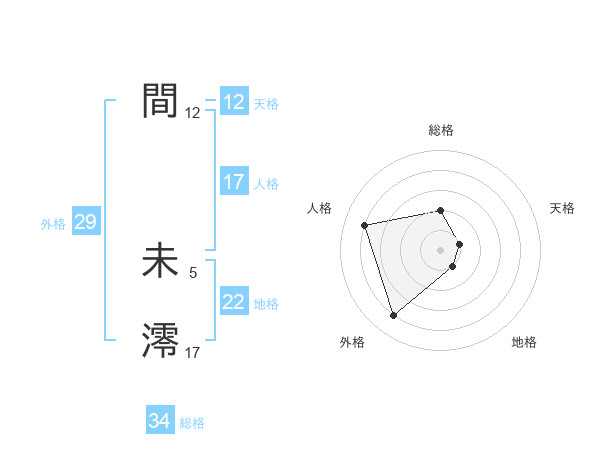 間 未澪さんの天格は12画の1点!