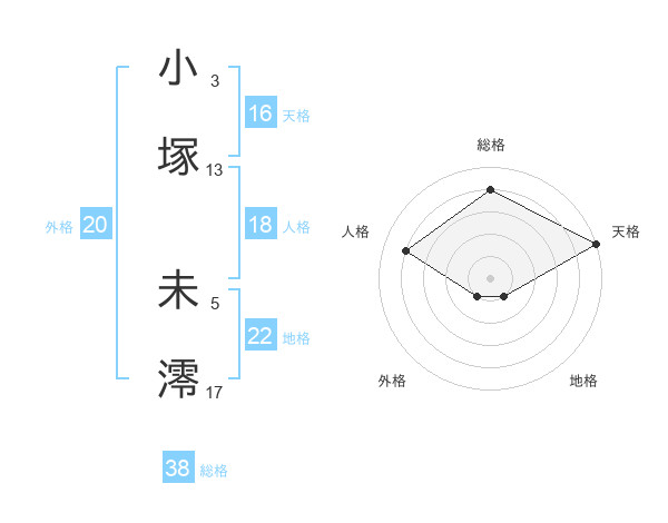小塚 未澪さんの天格は16画の5点!