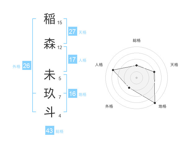 稲森 未玖斗さんの総格は43画の2点!