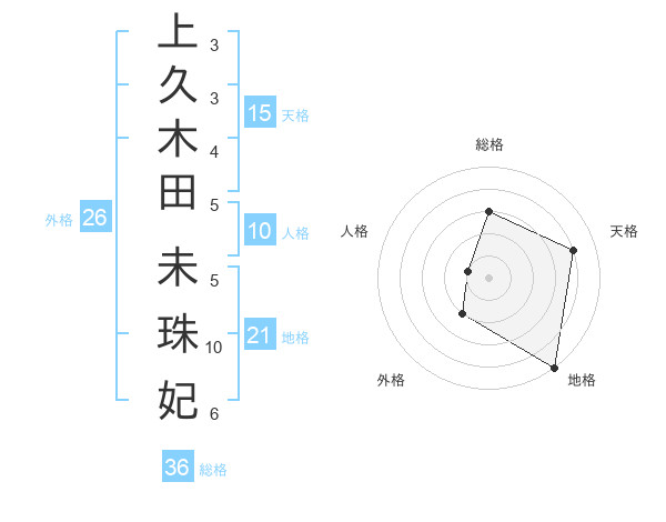 上久木田 未珠妃さんを姓名の画数から五運を鑑定