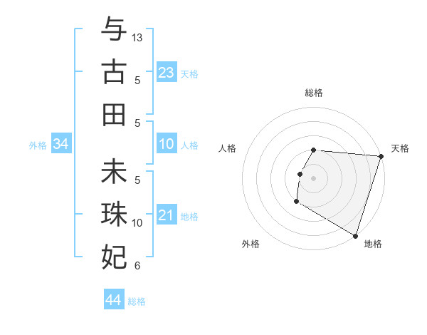 与古田 未珠妃さんを姓名の画数から五運を鑑定