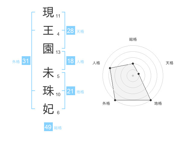 現王園 未珠妃さんの外格は31画の5点!