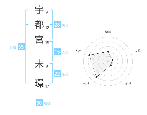 宇都宮 未環さんを姓名の画数から五運を鑑定