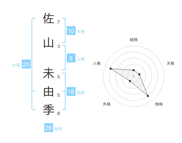 佐山 未由季さんの総格は28画の1点!