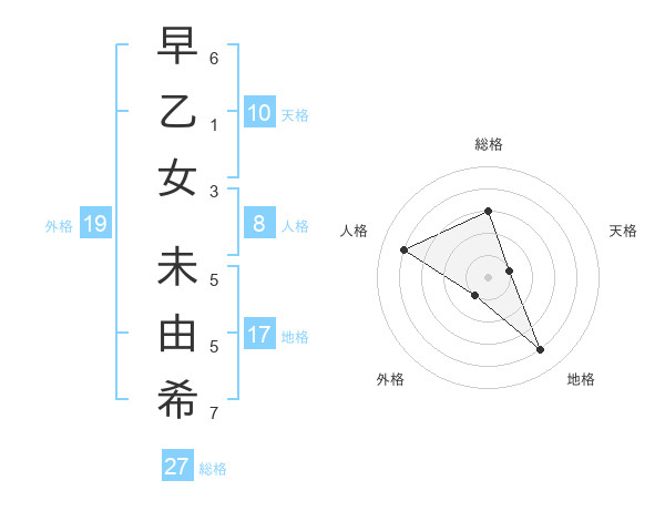 早乙女 未由希さんを姓名の画数から五運を鑑定