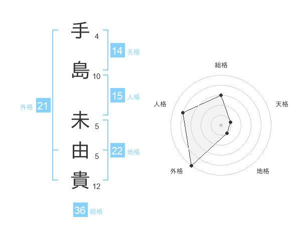 手島 未由貴さんを姓名の画数から五運を鑑定