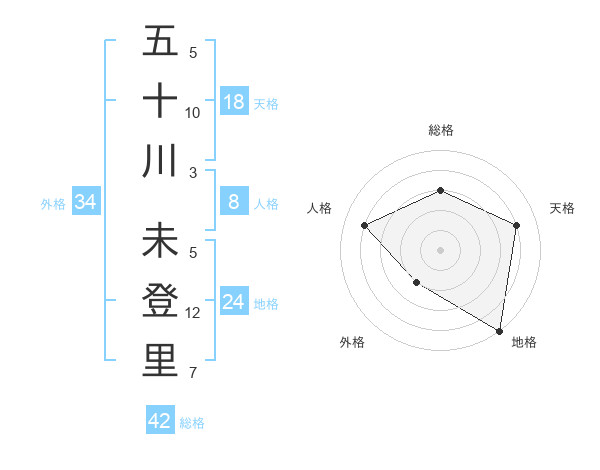 五十川 未登里さんを姓名の画数から五運を鑑定