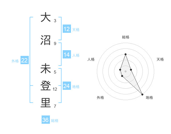 大沼 未登里さんを姓名の画数から五運を鑑定
