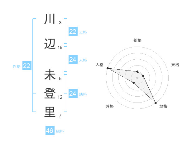 川辺 未登里さんを姓名の画数から五運を鑑定